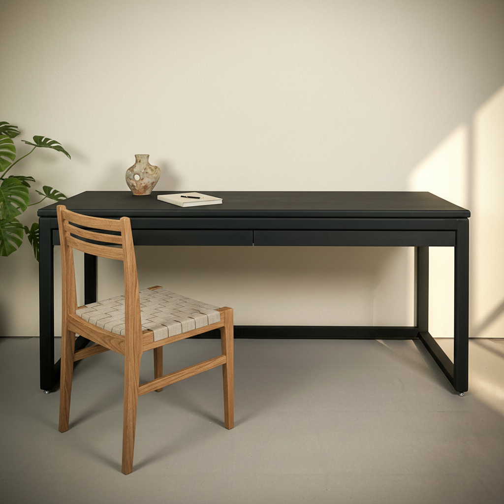 Imagine a luz natural tocando a superfície profundamente rica do ébano, enquanto o espaço ao redor parece respirar com mais ordem e foco.